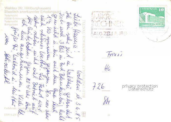 72767187 alte Postkarte Waldau Hildburghausen Teilansicht FDGB Erholungsheim Bergkristall Bungalows postalisch gelaufen Erhaltung siehe scans [WerneD78] KatCode: 11110016069024