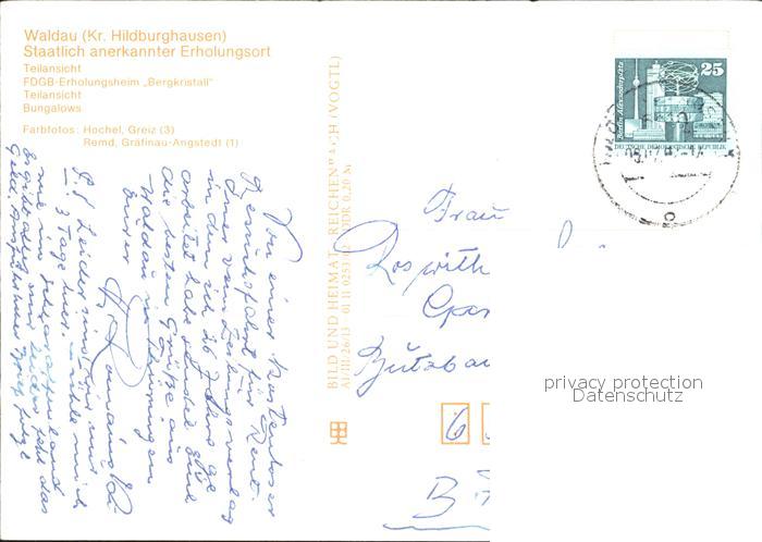 72479592 alte Postkarte Waldau Hildburghausen Teilansicht FDGB Erholungsheim Bergkristall Bungalows postalisch gelaufen Erhaltung siehe scans KatCode: 11110016069024