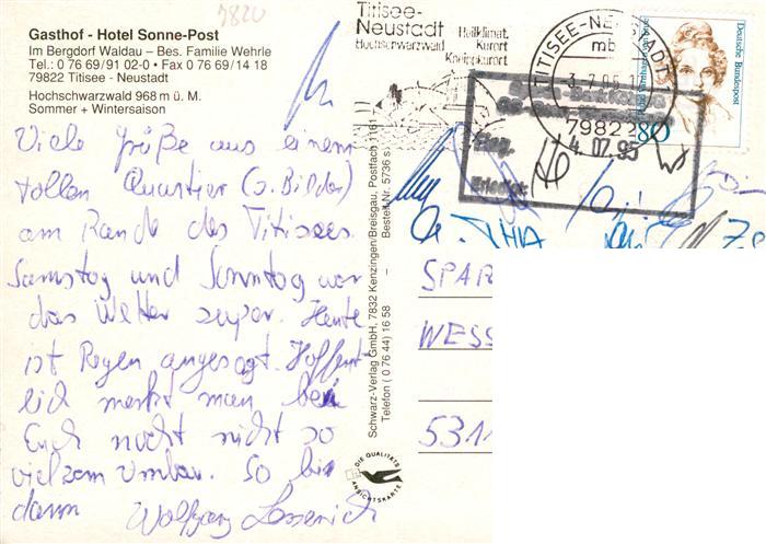 73928813 alte Postkarte Waldau Neustadt Gasthof Hotel Sonne Post Gaststube Panorama postalisch gelaufen Erhaltung siehe scans [WerneD78] KatCode: 11110008315039
