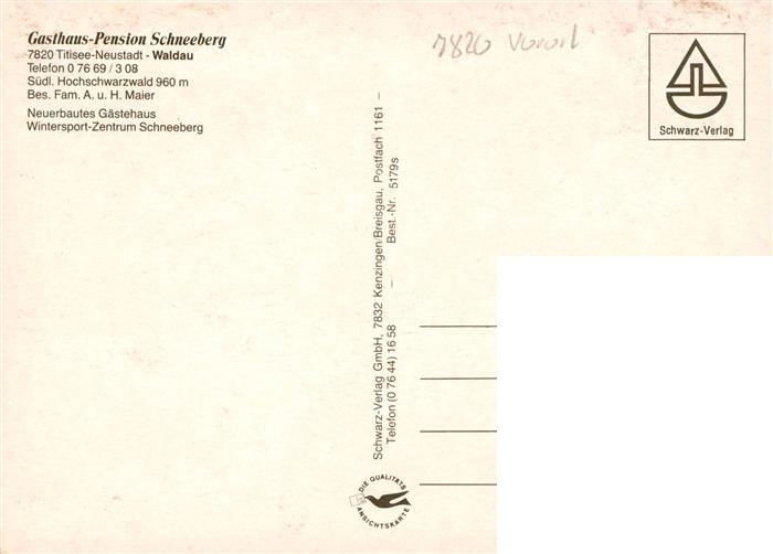 73929519 Waldau Schwarzwald Titisee-Neustadt Gasthaus Pension Schneeberg postalisch nicht gelaufen Erhaltung siehe scans [WerneD78] Wern Katcode 11110008315113
