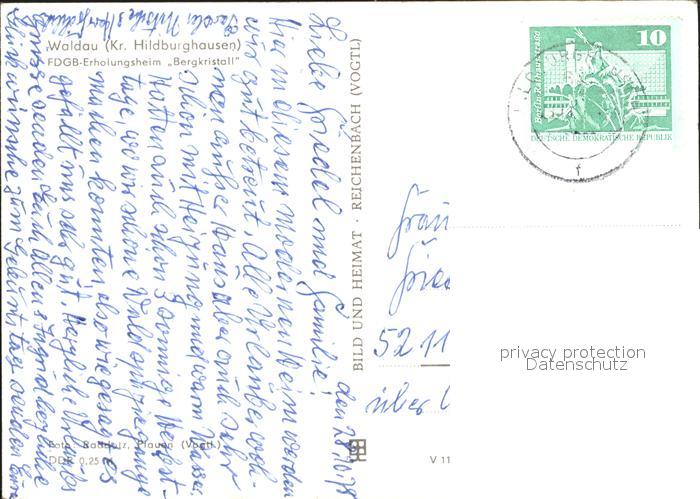 71925787 alte Postkarte Waldau Thueringen FDGB Erholungsheim Bergkristall postalisch gelaufen KatCode: 11110016069059