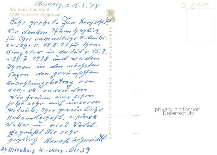 73090189 Waldau Thueringen Ferienheim Bergkristall postalisch nicht gelaufen Erhaltung siehe scans [PaolaD17] KatCode: 11110016069059