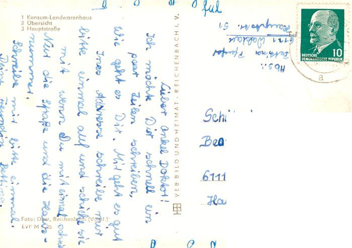 73896697 alte Postkarte Waldau Thueringen Konsum Landwarenhaus uebersicht Hauptstrasse postalisch gelaufen Erhaltung siehe scans [WerneD78] KatCode: 11110016069059