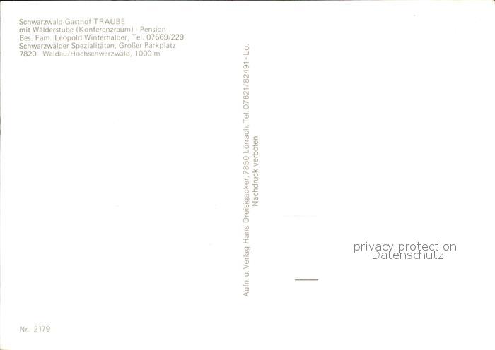72585117 Waldau Titisee-Neustadt Schwarzwald-Gasthof Traube postalisch nicht gelaufen Erhaltung siehe scans [AntonD74] KatCode: 11110008315113