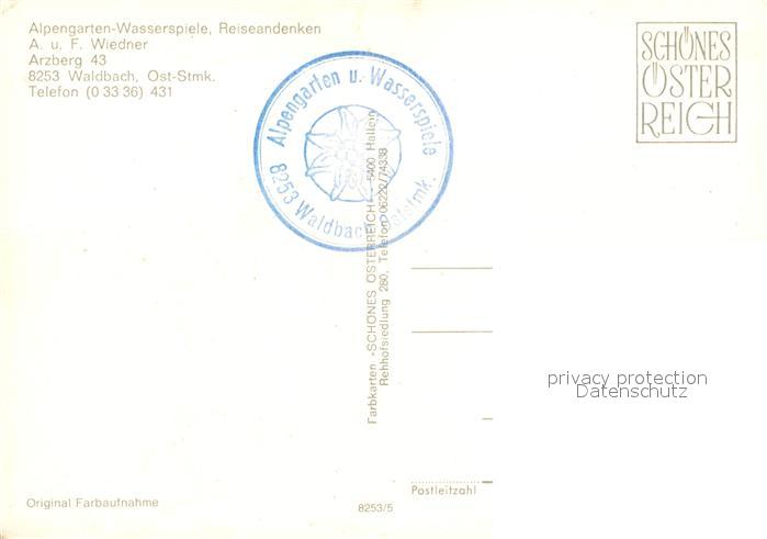 73073002 Waldbach Steiermark Alpengarten Wasserspiele postalisch nicht gelaufen Erhaltung siehe scans [KathaD81] KatCode: 11390224060747