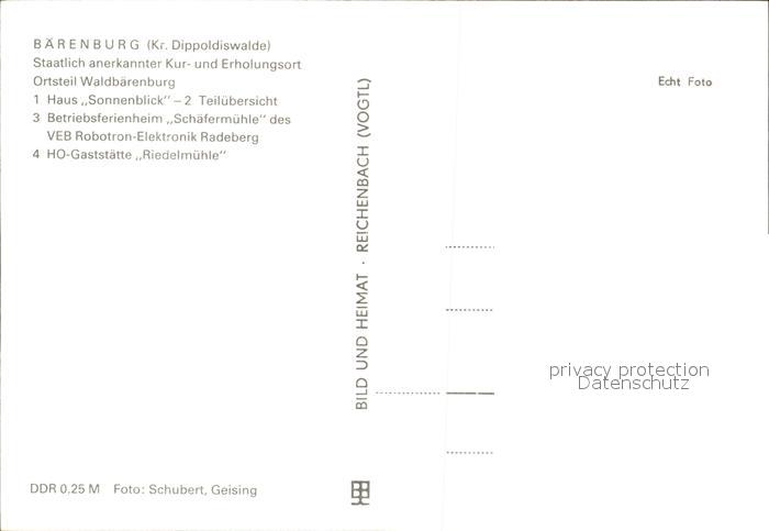 72406004 Waldbaerenburg Haus Sonnenblick Ferienheim Schaefermuehle Restaurant Riedelmuehle postalisch nicht gelaufen Erhaltung siehe scans KatCode: 11110014290010