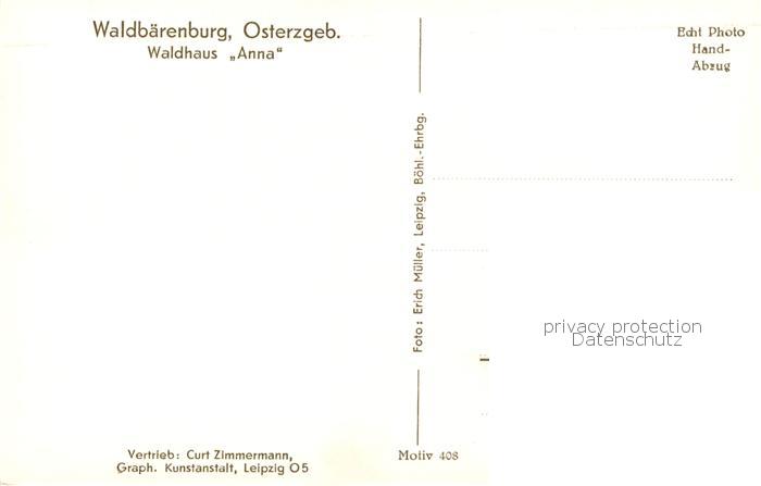 73797145 Waldbaerenburg Waldhaus Anna Handabzug postalisch nicht gelaufen Erhaltung siehe scans [FriedD77] KatCode: 11110014290010