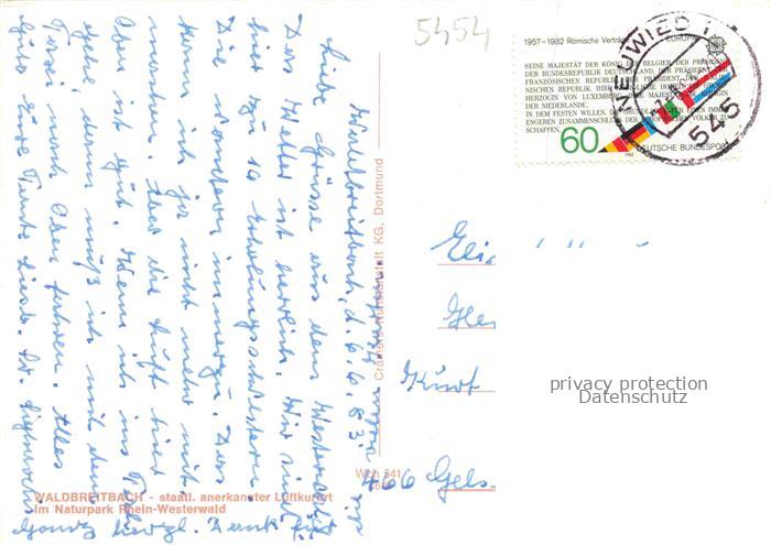 74050424 alte Postkarte Waldbreitbach Wied Fliegeraufnahme postalisch gelaufen Erhaltung siehe scans [WerneD78] KatCode: 11110007138076