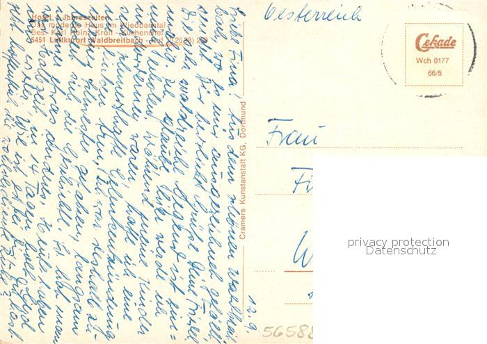 73711195 alte Postkarte Waldbreitbach Wied Hotel 4 Jahreszeiten Aussenansicht postalisch gelaufen Erhaltung siehe scans [LiesaD40] KatCode: 11110007138076