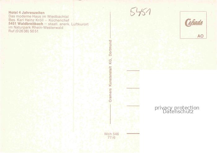 74035902 Waldbreitbach Wied Hotel Vier Jahreszeiten Neuwiederstrasse postalisch nicht gelaufen Erhaltung siehe scans [WerneD78] KatCode: 11110007138076