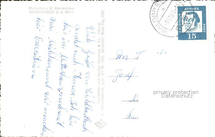 72073527 alte Postkarte Waldbreitbach Wied Mutterhaus St. Marienhaus %fa postalisch gelaufen Erhaltung siehe scans KatCode: 11110007138076