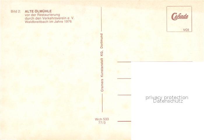 73673183 Waldbreitbach Wied Panorama Wiedtal Alte oelmuehle Wiedbruecke Marktplatz Brunnen postalisch nicht gelaufen Erhaltung siehe scans [FriedD77] KatCode: 11110007138076