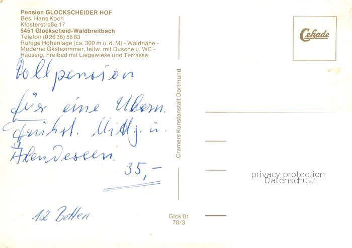 73801138 Waldbreitbach Wied Pension Glockscheider Hof Gastraeume Freibad postalisch nicht gelaufen Erhaltung siehe scans [WerneD78] KatCode: 11110007138076