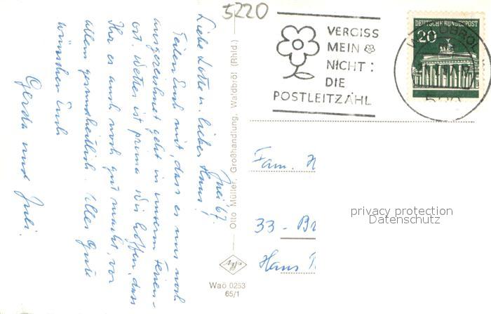 73693795 alte Postkarte Waldbroel Automobile Panorama postalisch gelaufen Fliegeraufnahme Erhaltung siehe scans [FriedD77] KatCode: 11110005374044