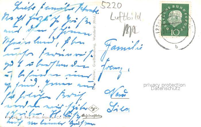 73755133 alte Postkarte Waldbroel Fliegeraufnahme postalisch gelaufen Erhaltung siehe scans [LiesaD40] KatCode: 11110005374044