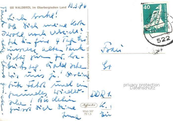 73029952 alte Postkarte Waldbroel Fliegeraufnahme postalisch gelaufen Erhaltung siehe scans [KathaD81] KatCode: 11110005374044