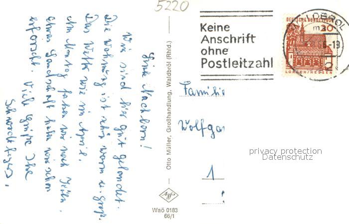 73693796 alte Postkarte Waldbroel Kaiserstrasse Krankenhaus Schullandheim Landschaftspanorama postalisch gelaufen Fliegeraufnahme Erhaltung siehe scans [FriedD77] KatCode: 11110005374044
