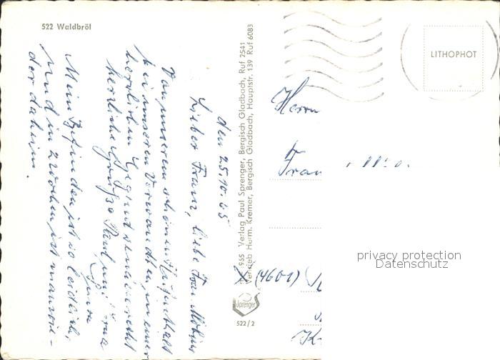 72330054 alte Postkarte Waldbroel Kirchtuerme Waldstrandbad Gartenstrasse postalisch gelaufen Erhaltung siehe scans KatCode: 11110005374044