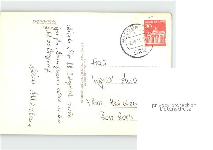 72134685 alte Postkarte Waldbroel Kreiskrankenhaus postalisch gelaufen Erhaltung siehe scans KatCode: 11110005374044