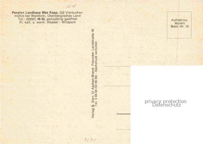 74023926 Waldbroel NRW Pension Landhaus Kapp Vierbruchermuehle postalisch nicht gelaufen Erhaltung siehe scans [WerneD78] KatCode: 11110005374044