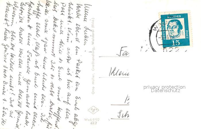 43369920 alte Postkarte Waldbroel Panorama Teilansicht Strandbad Krankenhaus Fliegeraufnahme postalisch gelaufen Erhaltung siehe scans [FriedD77] KatCode: 11110005374044
