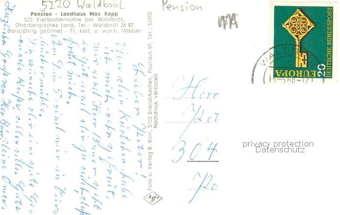 73755135 alte Postkarte Waldbroel PEnsion-Landhaus Max Knapp postalisch gelaufen Erhaltung siehe scans [LiesaD40] KatCode: 11110005374044