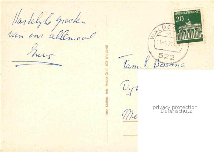 72889520 alte Postkarte Waldbroel postalisch gelaufen Erhaltung siehe scans [LiesaD40] KatCode: 11110005374044