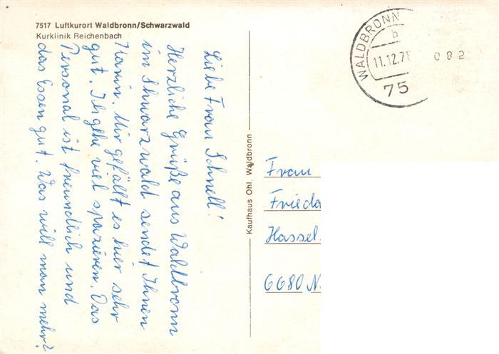 73938541 alte Postkarte Waldbronn Albtal Kurklinik Reichenbach postalisch gelaufen Erhaltung siehe scans [WerneD78] KatCode: 11110008215110