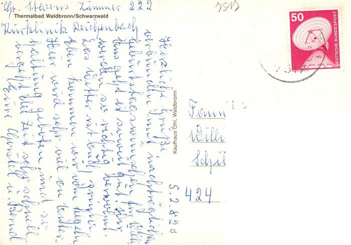 73938338 alte Postkarte Waldbronn Albtal Kurparksee Wassertreten Park Hallenbad Fontaene Fliegeraufnahme Kurklinik Reichenbach Panorama postalisch gelaufen Erhaltung siehe scans [WerneD78] KatCode: 11110008215110