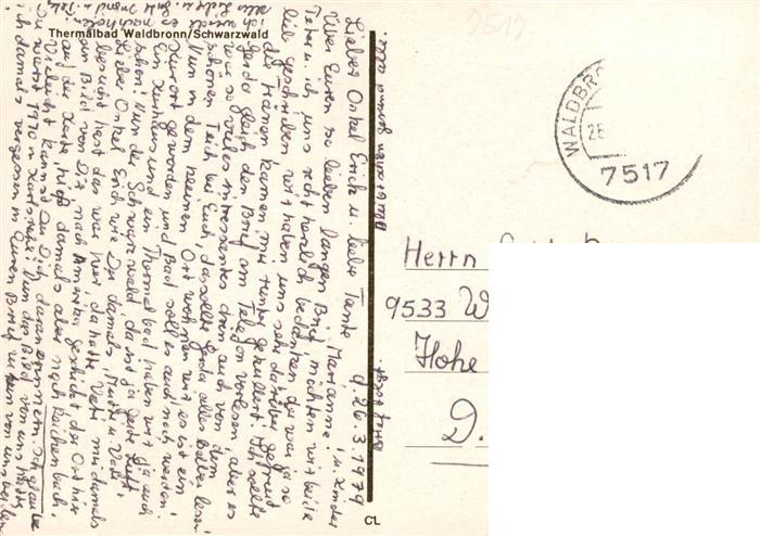 73938540 alte Postkarte Waldbronn Albtal Kurparksee Wassertreten Park Hallenbad Fontaene Fliegeraufnahme Kurklinik Reichenbach Panorama postalisch gelaufen Erhaltung siehe scans [WerneD78] KatCode: 11110008215110