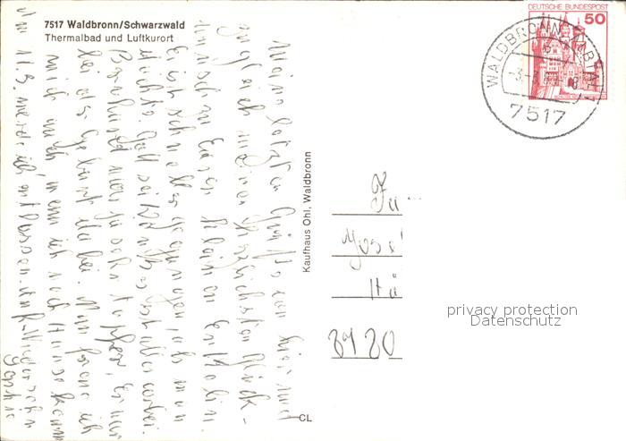 72428021 alte Postkarte Waldbronn Albtal Thermalbad postalisch gelaufen Erhaltung siehe scans KatCode: 11110008215110
