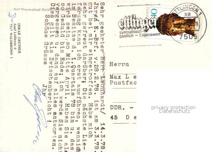 72911895 alte Postkarte Waldbronn Albtal Thermalbad Fliegeraufnahme postalisch gelaufen Erhaltung siehe scans [NatalD47] KatCode: 11110008215110