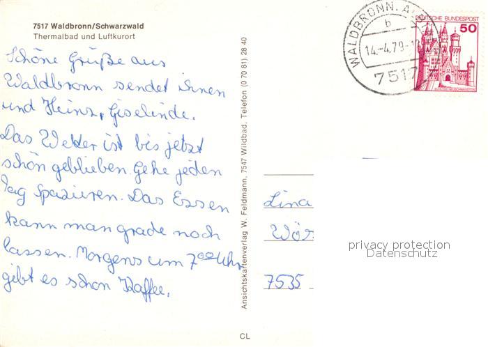 72948572 alte Postkarte Waldbronn Albtal Thermalbad postalisch gelaufen Erhaltung siehe scans [KathaD81] KatCode: 11110008215110