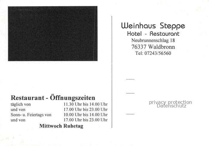 Waldbronn Albtal Weinhaus Steppe Hotel postalisch nicht gelaufen Erhaltung siehe scans [WerneD78] Wern Katcode 11110008215110