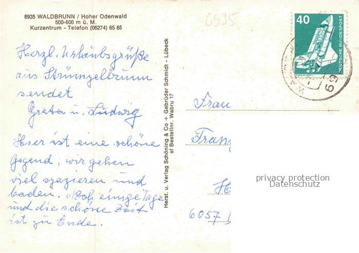 74047696 alte Postkarte Waldbrunn Odenwald BW Kurzentrum Gastraum Kegelbahn Hallenbad Terrasse postalisch gelaufen Erhaltung siehe scans [WerneD78] KatCode: 11110008225118