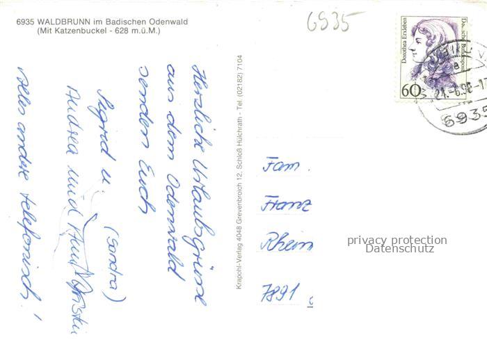 74047733 alte Postkarte Waldbrunn Odenwald BW Muehle am Oberhoellgrund Weissbach Katzenbuckelturm Struempfelbrunn Feriendorf Kurzentrum Muelben Schwarzwild Oberdielbach postalisch gelaufen Erhaltung siehe scans [WerneD78] KatCode: 11110008225118