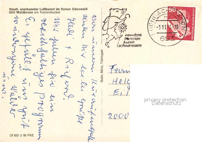 72961340 alte Postkarte Waldbrunn Odenwald Kurzentrum Hoher Odenwald Hallenbad Minigolf Tischtennis Scooter Kegelbahn Tennis postalisch gelaufen Erhaltung siehe scans [WerneD78] KatCode: 11110008225118