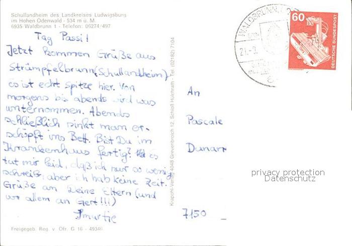 72209241 alte Postkarte Waldbrunn Odenwald Schullandheim Ludwigsburg Fliegeraufnahme postalisch gelaufen Erhaltung siehe scans KatCode: 11110008225118