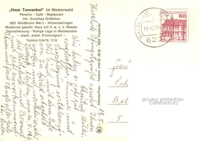 73734665 alte Postkarte Waldbrunn Westerwald Haus Tannenhof See postalisch gelaufen Erhaltung siehe scans [LiesaD40] KatCode: 11110006533016