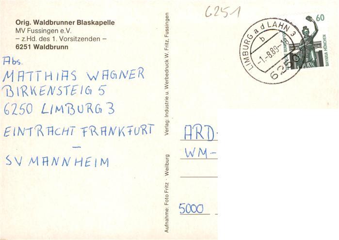 73936236 alte Postkarte Waldbrunn Westerwald Original Waldbrunner Blaskapelle postalisch gelaufen Erhaltung siehe scans [FriedD77] KatCode: 11110006533016