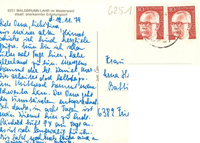 73936160 alte Postkarte Waldbrunn Westerwald Ortsansicht Panorama Seepartie postalisch gelaufen Erhaltung siehe scans [FriedD77] KatCode: 11110006533016