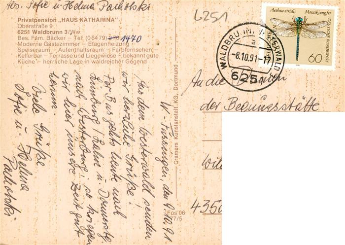 73936210 alte Postkarte Waldbrunn Westerwald Pension Haus Katharina postalisch gelaufen Erhaltung siehe scans [FriedD77] KatCode: 11110006533016