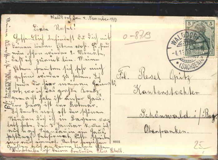 40899932 alte Postkarte Walddorf postalisch gelaufen KatCode: