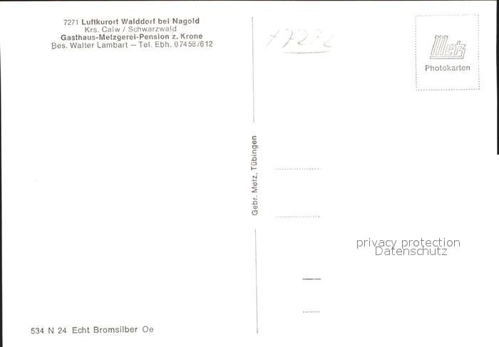 41768645 Walddorf Altensteig Gasthaus Metzgerei Pension zur Krone Luftkurort Schwarzwald Bromsilber postalisch nicht gelaufen Erhaltung siehe scans KatCode: 11110008235006