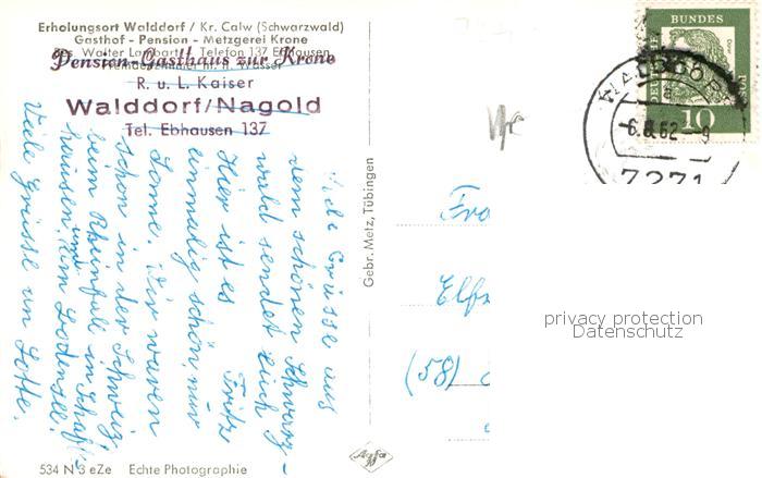 73833388 alte Postkarte Walddorf Altensteig Gasthof Pension Krone Panorama postalisch gelaufen Erhaltung siehe scans [WerneD78] KatCode: 11110008235006