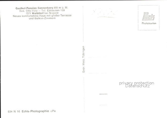 41768639 Walddorf Altensteig Gasthof Pension Sonnenberg postalisch nicht gelaufen Erhaltung siehe scans KatCode: 11110008235006