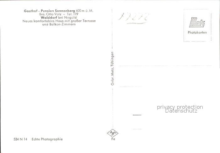41768635 Walddorf Altensteig Gasthof Pension Sonnenberg postalisch nicht gelaufen Erhaltung siehe scans KatCode: 11110008235006