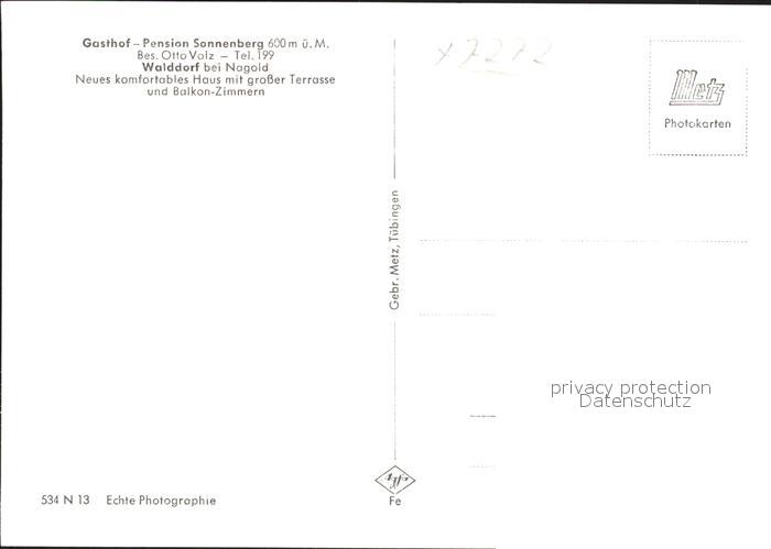 41768634 Walddorf Altensteig Gasthof Pension Sonnenberg postalisch nicht gelaufen Erhaltung siehe scans KatCode: 11110008235006