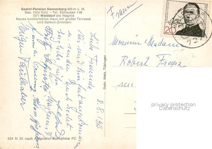 73635856 alte Postkarte Walddorf Altensteig Gasthof Pension Sonnenberg postalisch gelaufen Erhaltung siehe scans [FriedD77] KatCode: 11110008235006