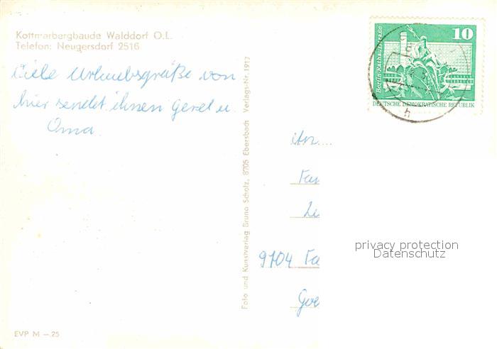 72728015 alte Postkarte Walddorf Sachsen Kottmarbergbaude postalisch gelaufen Erhaltung siehe scans [FriedD77] KatCode: 11110014286090